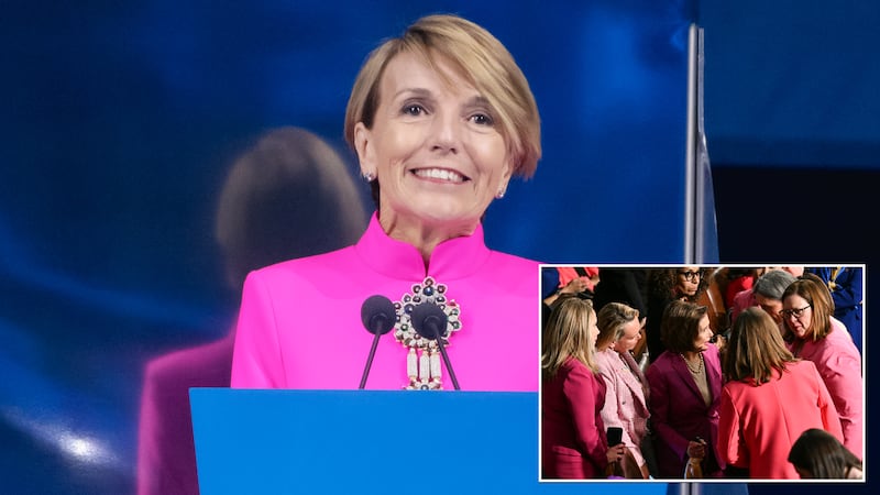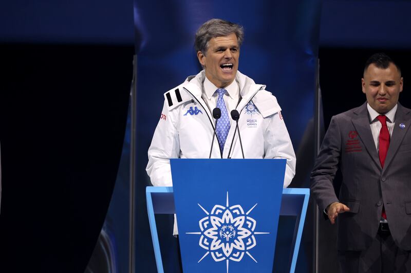3. Next, Patrizia Sandretto Re Rebaudengo, President of the Games’ Local Organizing Committee, took the podium in a hot pink midi dress. Did this choice remind Vance of the Democratic Women’s Caucus donning pink at Trump’s joint session of Congress address last week?