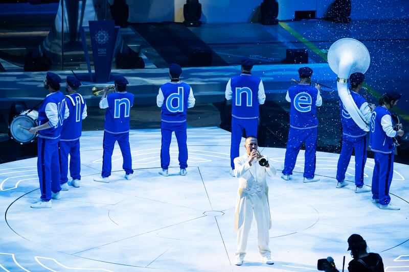 1. The eight-piece band wore jackets that spelled out the word “kindness.” Was this a pointed response to Melania Trump’s infamous “I really don’t care, do U?” jacket from the first Trump administration? As ESPN reporter Jen Lada explained, the jackets were another reminder “of what the goal is from these world winter games. To spread kindness. To be kind. To recognize peoples’ differences and to celebrate them.”
