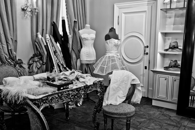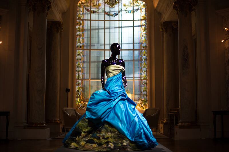 Trying to “[reconcile] world fashion with the Soviet system,” Zaitsev accepted a young Yudashkin, who was right out of school, as an apprentice at his studio, named The Fashion Theater. Zaitsev—who was compared to designers like Christian Lacroix and Yves Saint Laurent—would present his flamboyant, haute couture collections in a theatrical performance, rather than a simple runway show. Models wearing his creations would participate in the unfolding of a theme, either drama or parody. It was this idea of theater and performance that fascinated Yudashkin and served as the inspiration for his design aesthetic. “I used to design for theater and for the movies; for pop culture artists and singers,” the 50-year-old fashion designer told The Daily Beast. “Fashion came after that.”