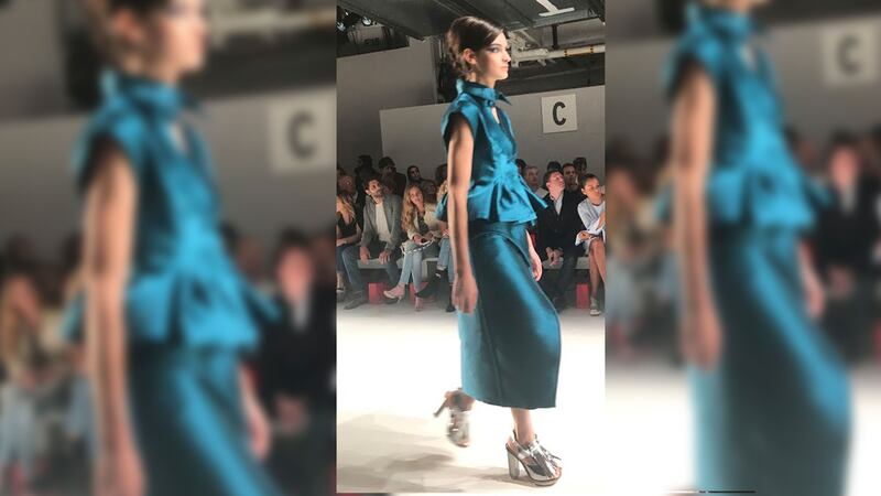 The show featured several single shoulder looks and many hi-lo hemlines.