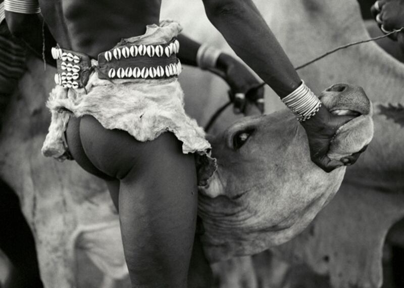 A young Hamar initiate is required to begin with a running leap, literally jumping onto the back of the first bull in the line, and must cross the cattle’s backs four times without falling in order to become eligible for marriage.