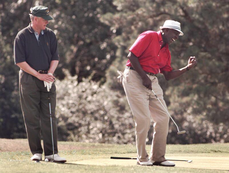 Jordan recoils when the media describe him as a powerbroker, Washington insider, or worst of all “a fixer,” but he says that by declining an official post in the Clinton administration after leading the president-elect’s transition team, he could be a better friend to the president. “I believe when you raise your hand, you give up a little bit of your independence, and I didn’t want to do that, and I didn’t think I had to do that to serve him, or be a good citizen and serve the country.” The images of Jordan golfing with Clinton during the height of the impeachment effort testified to their friendship even as Jordan was called to testify before the grand jury.
