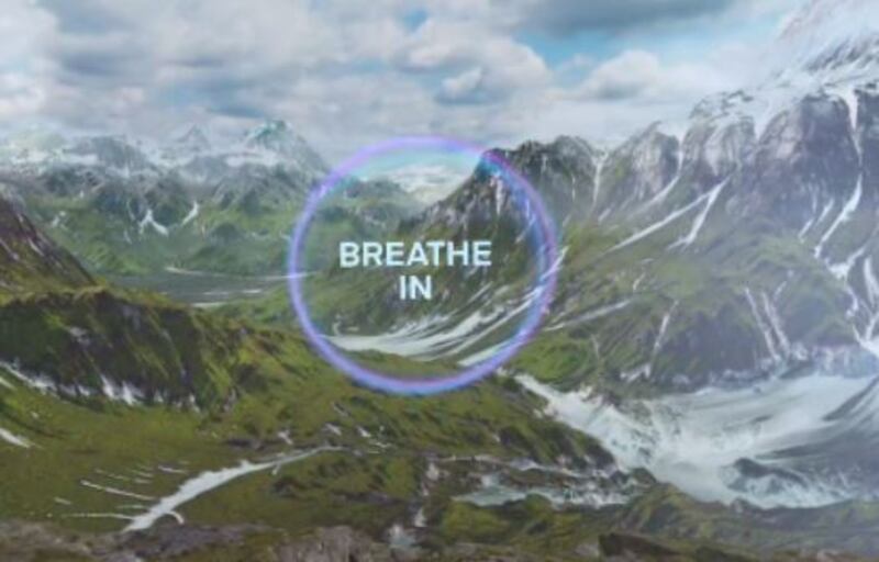 The “breathe in” prompt for Rocket VR Health’s meditation program.