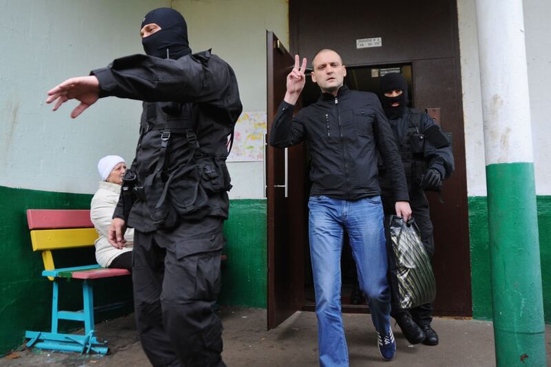 Udaltsov, a leader of the Left Front protest movement, which led demonstrations against Putin this winter, was put under house arrest on Wednesday along with fellow activists Konstantin Lebedev and Leonid Razvozjayev. All three are suspected of staging terrorist attacks in Russia, a crime which is punishable by more than 10 years in prison. “This is arbitrary repression,” Udaltsov told reporters as police officers in black uniforms and balaclavas escorted him outside of his apartment on Wednesday. “I hope society will not stay silent.”