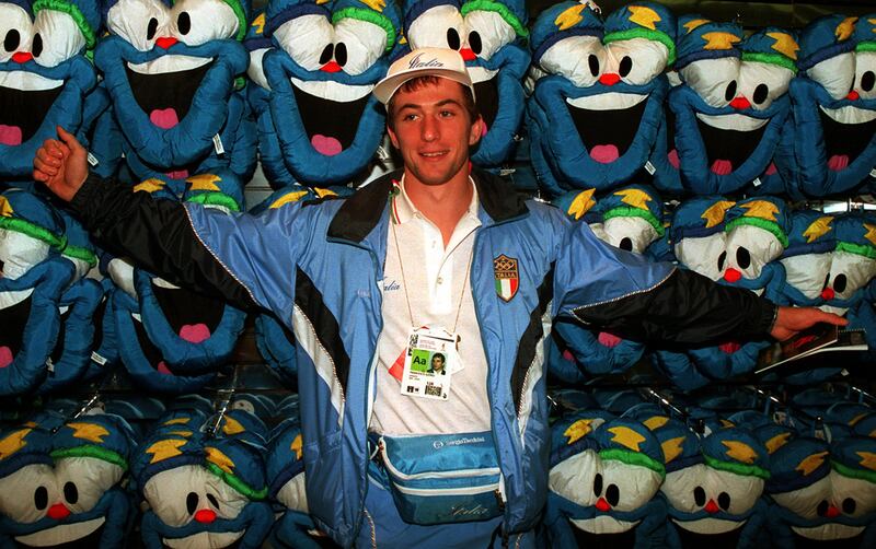 This anthropomorphized snowball and ice cube were the result of an international design contest won not by an Italian, but by a Portuguese designer named Pedro Albuquerque. Chosen to represent, collectively, friendship, joy, enthusiasm, and elegance, their names made it clear that the main Winter Olympic values they represented were snow (neve) and ice (ghiaccio, or Gliz for short).