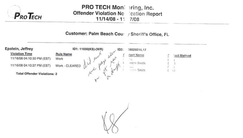 In one instance, Epstein’s peculiar work-release appears to have triggered an automated violation report on Nov. 16, 2008.