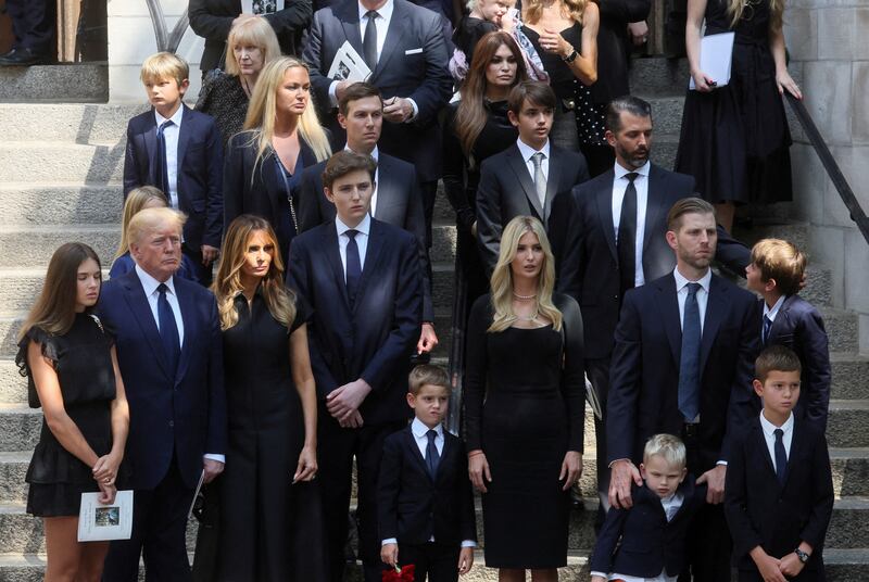 This image, taken at the funeral of Trump’s first wife Ivana, is one of those used by people eager to work out his true height by triangulating from his 6 foot 7 son, Barron.