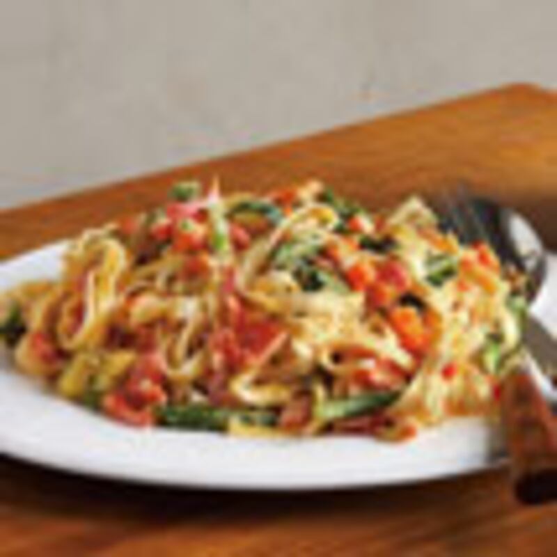 Fettuccine with Spring Vegetables by Giuliano Hazan