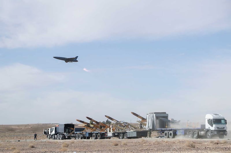 A drone is launched during a large-scale drone combat exercise of Army of the Islamic Republic of Iran, in Semnan, Iran on January 4, 2021.