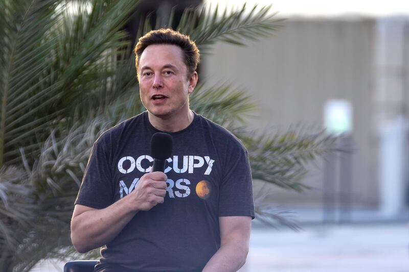 SpaceX founder Elon Musk speaks during a T-Mobile and SpaceX joint event on Aug. 25, 2022 in Boca Chica Beach, Texas.