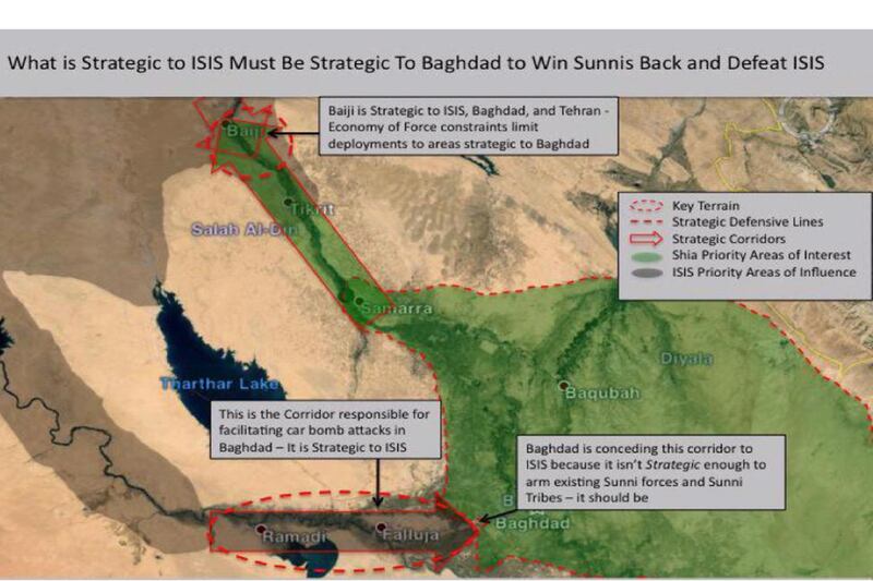 With the United States acting as a third-party guarantor, the ISF and the Sons of Iraq worked together to secure the Ramadi-Fallujah-Abu Ghraib corridor and defeat al Qaeda in Iraq. The corridor was a key AQ facilitation route to conduct high-profile attacks in Baghdad to incite and foment the Shia sectarian responses leading to the violence and high body counts in the capital in 2005-2006. Now the corridor is being ceded to ISIS as the predominantly Shia force falls back to areas along the Shia-Sunni sectarian faultline, their default position.