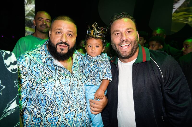DJ Khaled, Asahd Khaled and David Grutman, Oct. 21, 2017, Miami, Florida.
