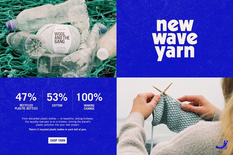 Makers of all things knitting, Wool and the Gang is jumping on the sustainability bandwagon (even more so than promoting you to knit your own sweater) and has launched an eco-conscious yarn made from recycled water bottles. Dubbed New Wave Yarn, it's an almost 50/50 split of recycled plastic bottles and cotton (there are three bottles in each ball of yarn).