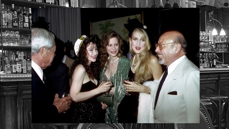 Celebrities and socialites were regulars for dinner and parties at Mortimer’s. From left to right: Fashion editor Elizabeth Saltzman and actor William Baldwin, Iman, Calvin Klein and Nan Kempner, and Ivana and Donald Trump.