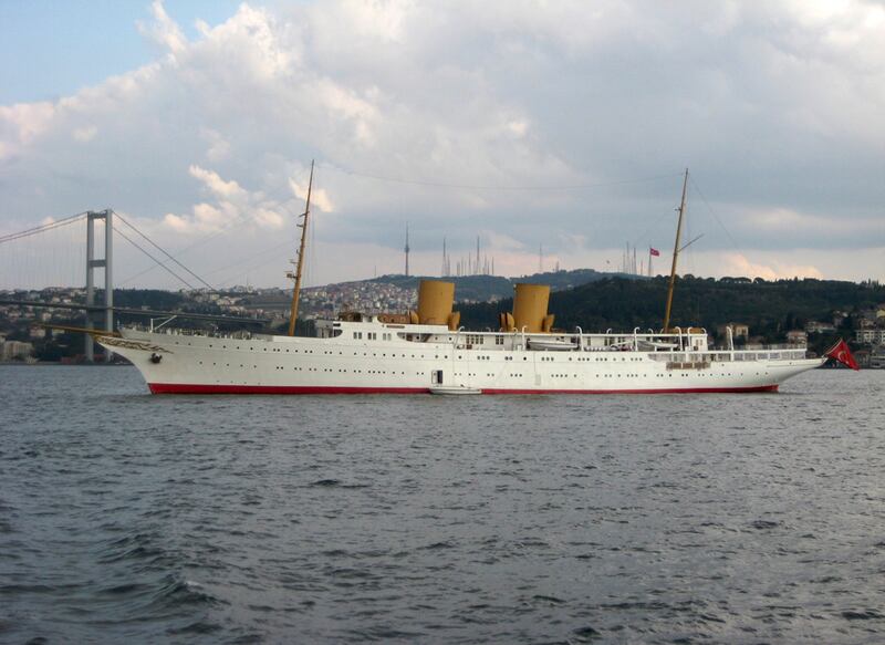 When the Savarona launched in 1931, it was the largest yacht in the world. It was built for Emily Roebling Cadwalader, an American heiress, but was purchased by the Turkish government years later. It was used as a training ship in the middle of the century and is now being chartered by one of the wealthiest men in Turkey, Kahraman Sadikoglu. It has a library, a movie theater, a Turkish bath, a swimming pool, and a gold-trimmed staircase.