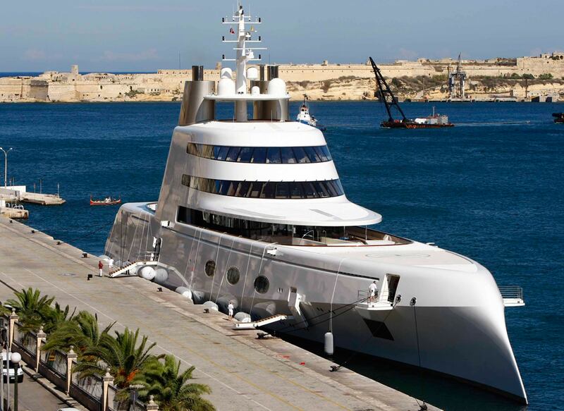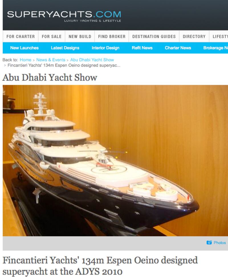 Completed by the Italian shipbuilding company Fincantieri earlier this year, the 134-meter superyacht was unveiled at the Abu Dhabi Yacht Show in February. It has seven decks, a helicopter hangar, and two helicopter pads, as well as a submarine and a seawater pool. Its exterior was designed by Espen Oeino and its interior was designed by decorators Alberto Pinto and Laura Sessa.