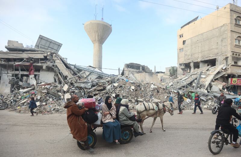 Palestinians move toward safer areas following the resumption of Israeli strikes, after the expiration of a seven-day truce between Israel and Hamas militants.