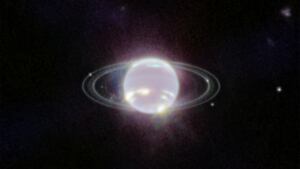 Older images of Uranus, most famously ones taken by Voyager 2 decades ago, made the seventh planet from the sun look like a pale, blue-green world. Here, Webb’s new prowess shows off Uranus’s vibrant atmosphere and its huge polar cap.